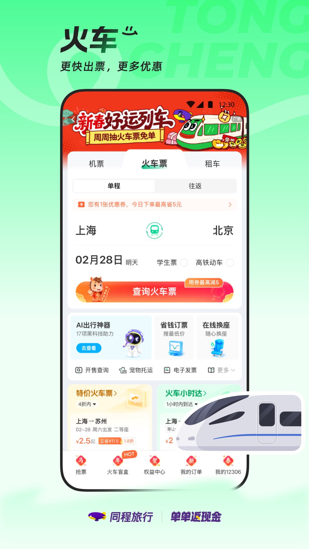 同程旅行,新一代旅行平台。 作为中国的优质在线旅行服务提供商之一,为2亿用户随时随地提供专业的机票、酒店、火车票、汽车票、门票、国内外度假线路等全方面旅游产品的在线预订服务,让用户享受更便捷、更舒适的旅行。 【产品功能】 1、新客礼包:同程旅行APP新用户可在同程APP内参与领取新客大礼包,内含国内机票、火车票、国内酒店、景点门票、汽车票、打车等新客专享红包,先领券再下单更划算,详情以活动内规... 展开